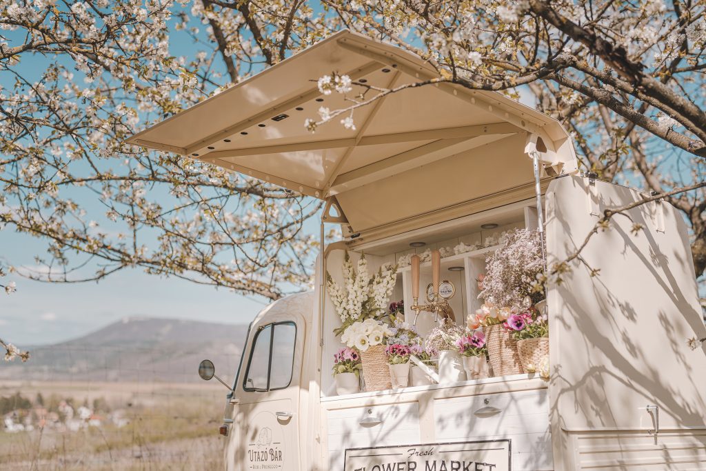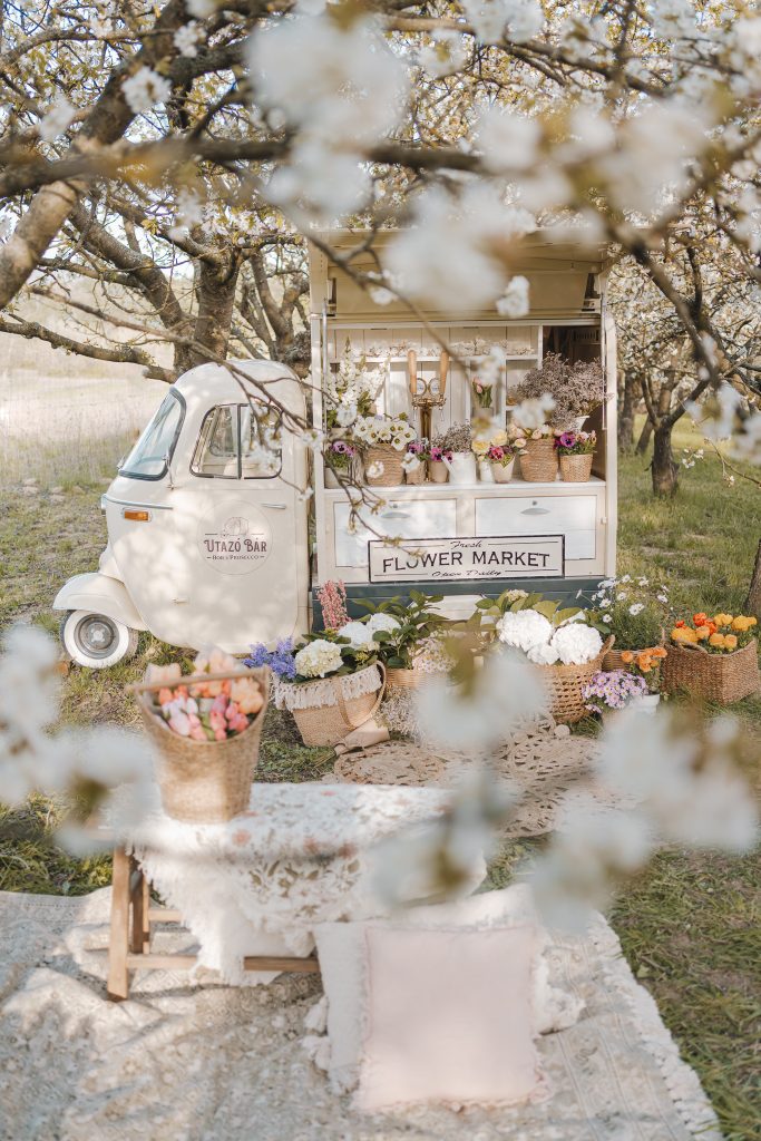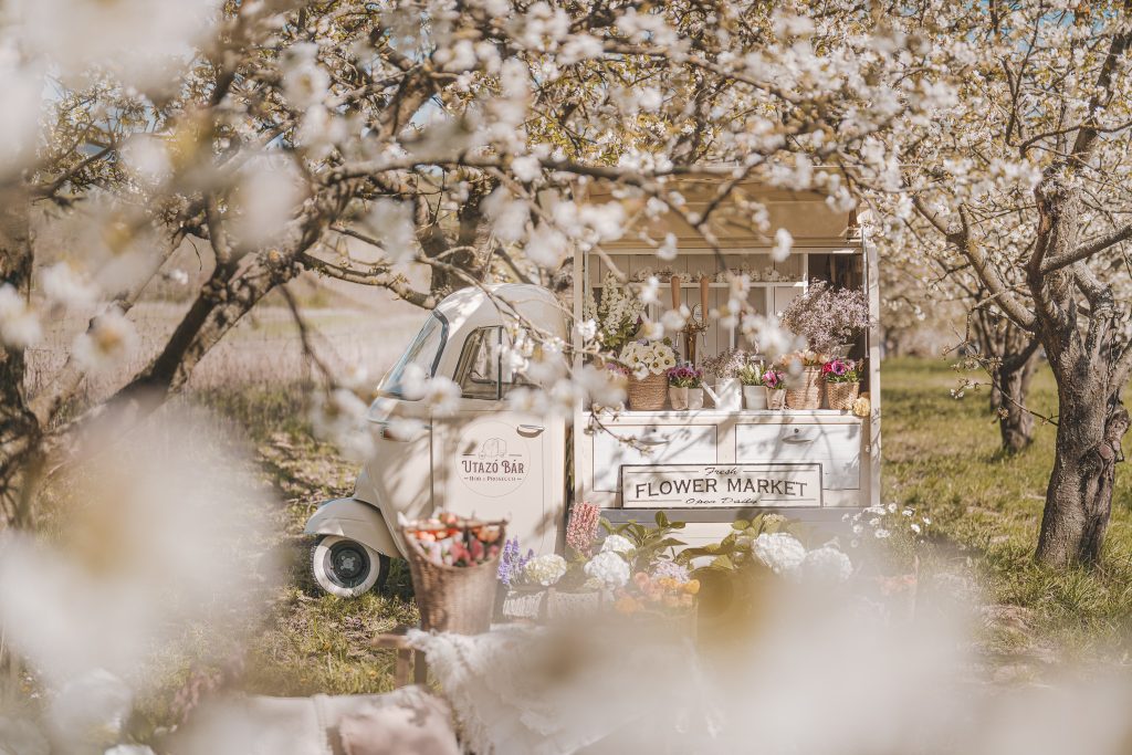 A fotózást egy virágzó cseresznyéskertben tartjuk a solymári dombok ölelésében.